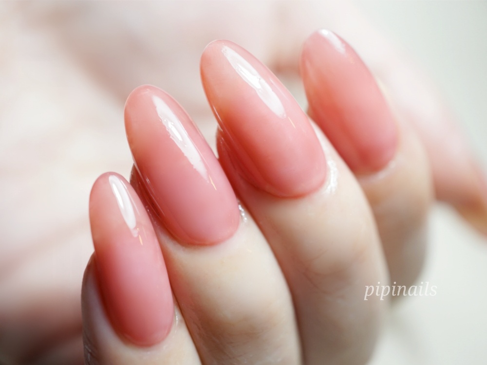 ご希望のカラーを薄く重ねてグラデーションを作っていきます。根元が透明なので地爪が伸びても自然な仕上がりです。
